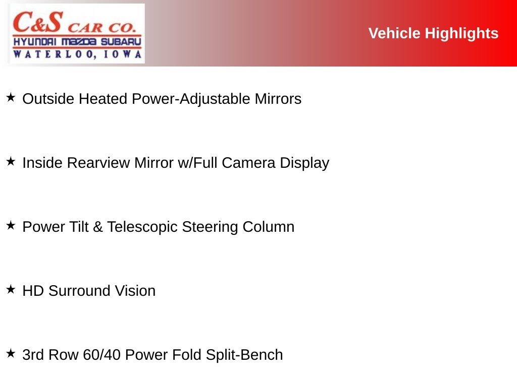 Experience unparalleled comfort with the Automatic Heated Steering Wheel, Heated and Ventilated Front Seats, and Heated Second-Row Outboard Seats. The HD Surround Vision and Full Camera Display Rearview Mirror provide enhanced visibility and peace of mind on the road.
