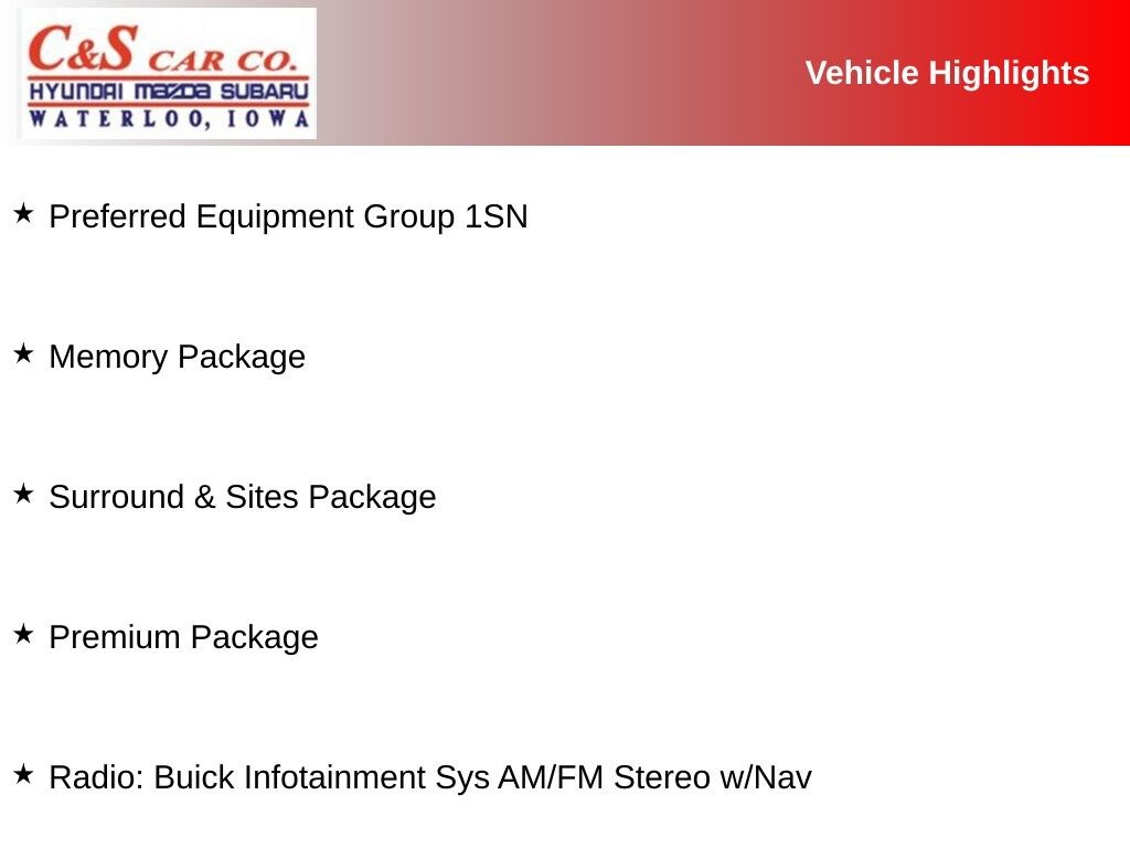 - Radio: Buick Infotainment Sys AM/FM Stereo w/Nav$495