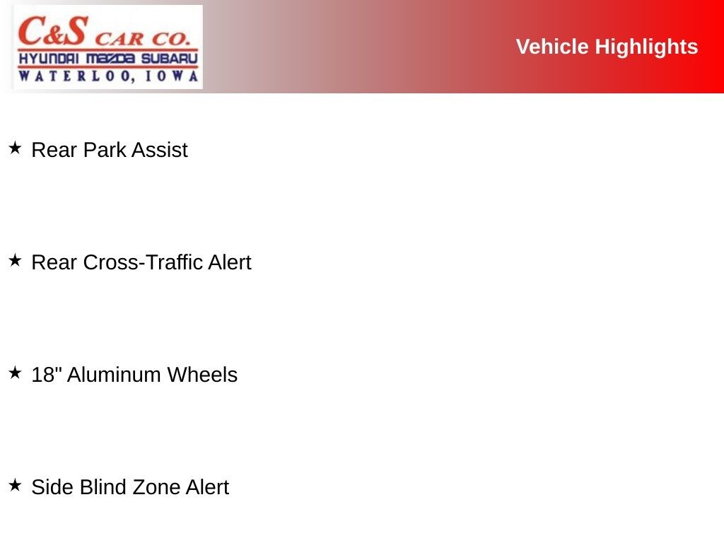 ⢠Driver Confidence Package, featuring Side Blind Zone Alert, Rear Cross Traffic Alert, and Rear Park Assist