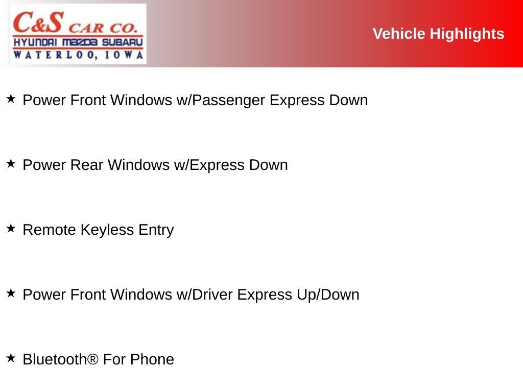 - Power Front Windows w/Driver Express Up/Down