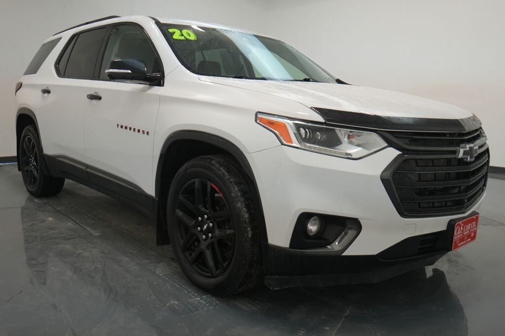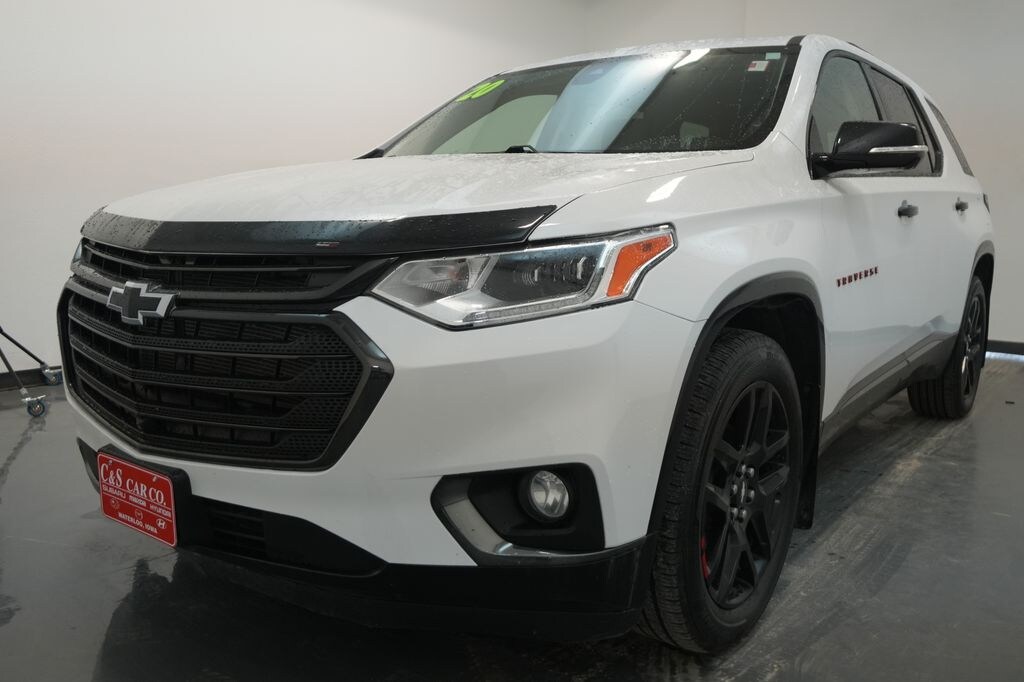 Summit White 2020 Chevrolet Traverse 4D Sport Utility Premier 3.6L V6 SIDI VVT 17/25 City/Highway MPG 9-Speed Automatic AWD