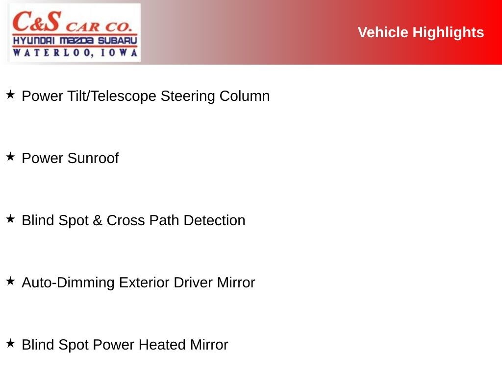 ⢠Plus Group: Power tilt/telescope steering column, blind spot monitoring, heated front seats, and more