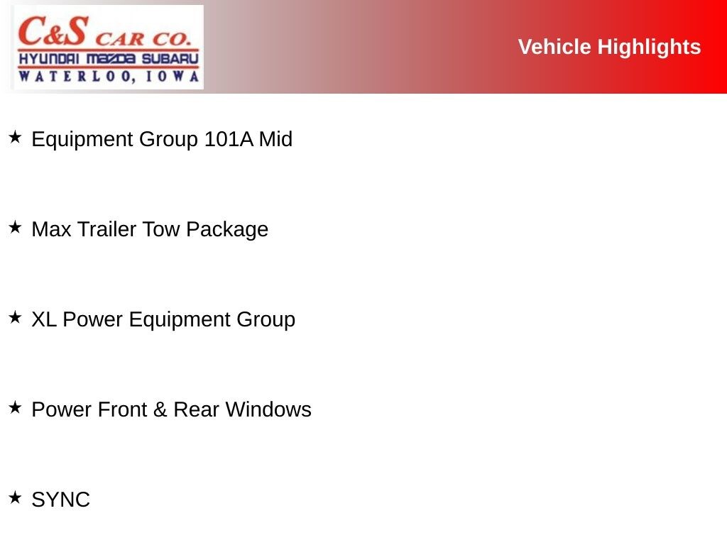 4.2" Productivity Screen in Instrument Cluster, Class IV Trailer Hitch Receiver, Cruise Control, Engine Oil Cooler, Equipment Group 101A Mid, Extended Range 36 Gallon Fuel Tank, FordPass Connect (4G), Illuminated Entry, Integrated Trailer Brake Controller, Max Trailer Tow Package, MyKey, Perimeter Alarm, Power Door Locks, Power Front & Rear Windows, Power Glass Sideview Mirrors w/Black Skull Caps, Power Tailgate Lock, SYNC, Upgraded Front Stabilizer Bar, Wheels: 17" Silver Steel, XL Power Equipment Group.