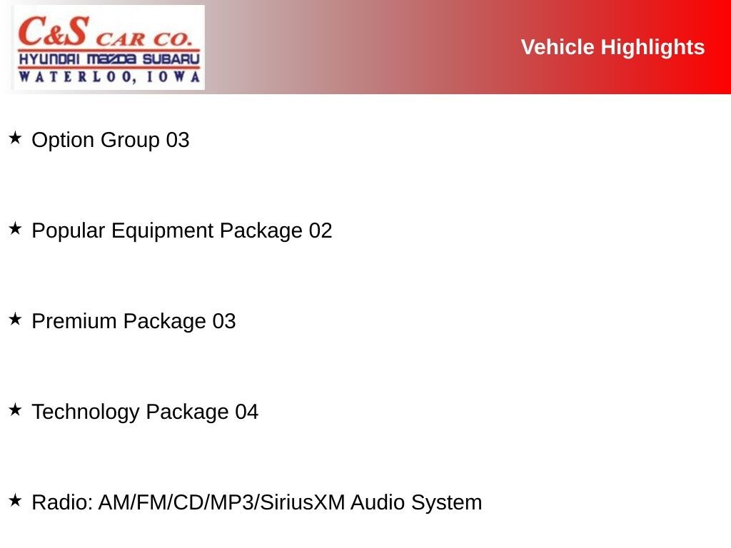 - Radio: AM/FM/SiriusXM/CD/MP3 Audio System