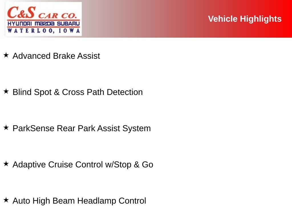 Adaptive Cruise Control w/Stop & Go, Advanced Brake Assist, Advanced Safety Group, All-Season Floor Mats, Auto High Beam Headlamp Control, Auto-Dimming Rear-View Mirror, Blind Spot & Cross Path Detection, Cold Weather Group, Full Speed FWD Collision Warn Plus, Heated Front Seats, Heated Steering Wheel, Lane Departure Warning Plus, ParkSense Rear Park Assist System, Quick Order Package 2GJ, Rain Sensitive/Intermittent Wipers, Reversible Carpet/Vinyl Cargo Mat, Safety & Security Group, Security Alarm, Wheels: 17" x 7.0" Silver Painted Aluminum, Windshield Wiper De-Icer.