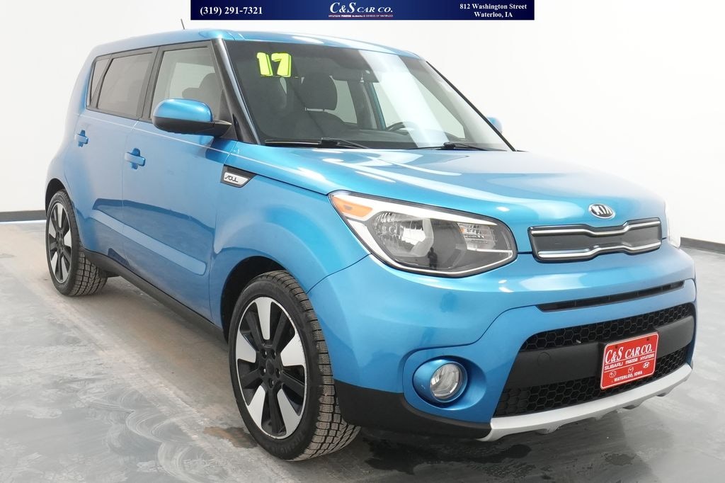 Discover the perfect blend of style, comfort, and versatility with this 2017 Kia Soul Plus. Boasting a sleek blue exterior and a two-tone roof, this compact crossover is sure to turn heads wherever you go. But it's not just about good looks â" this Soul is packed with features that will elevate your driving experience.