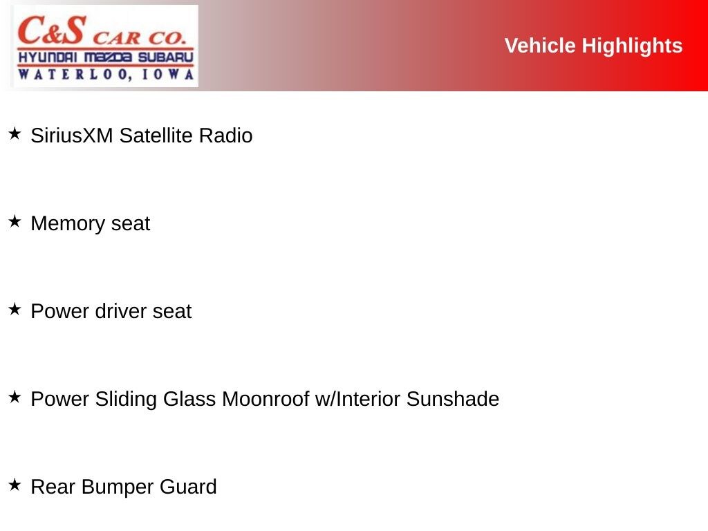 ⢠Power Sliding Glass Moonroof w/Interior Sunshade