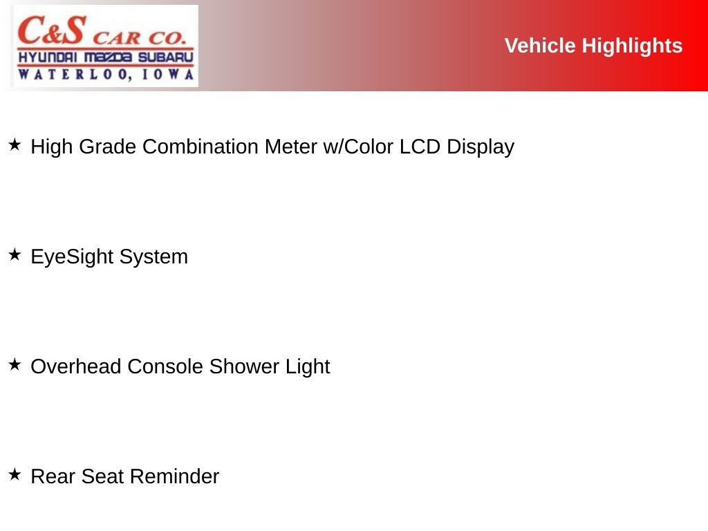 - Radio: Subaru STARLINK 6.5" Multimedia Plus System