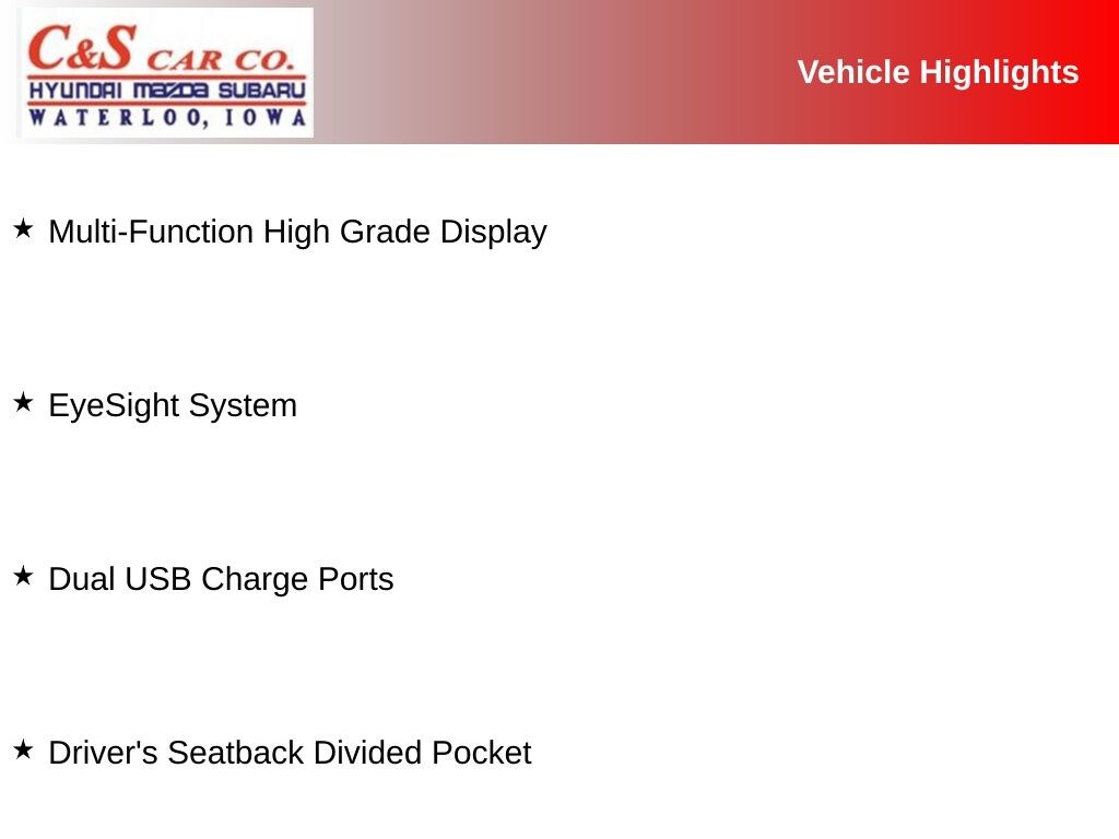 - Radio: Subaru Starlink 6.5" Multimedia Plus System
